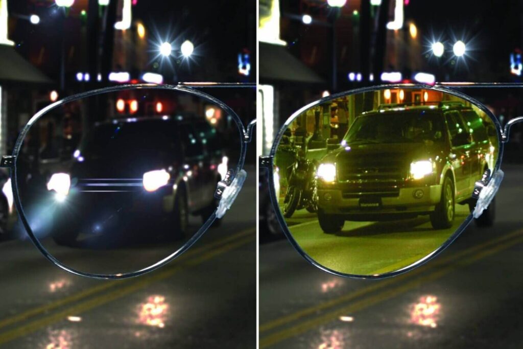 Helps reduce glare from headlights and streetlights, making them useful for night driving.